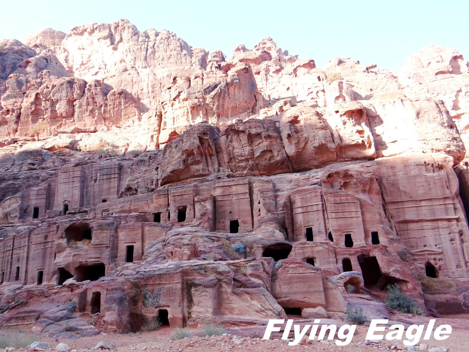 Street of Facades),山岩上有眾多拿巴提人的墓穴。在鮮少植物的山壁上,竟有牧羊人放牧羊群。街道上另一個令人矚目的建築是羅馬式的露天劇場,舞台的後方有四根石柱,半圓形的觀眾席一層層往上,共可容納四千名觀眾。這是全世界唯一從岩石鑿出的劇場,十分獨特。